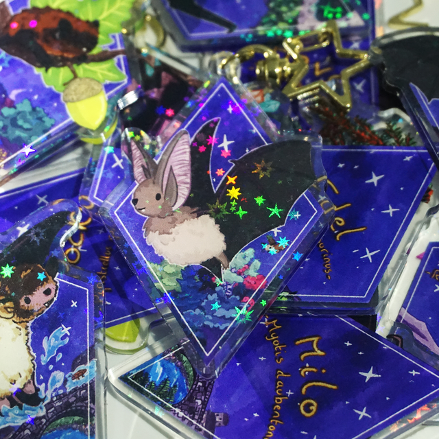● Un porte-clé "World of Bats - Série 1" holographique parmis 6 possibles ( 7,5cm de haut sur 5 à 7cm de large, en acrylique transparent avec effet holographique étoilé sur le recto, accroche en métal doré)