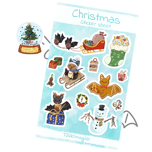 Les chauves-souris sont prêtes à fêter Noël avec cette planche de stickers ! Retrouvez 6 chauves-souris festives et 6 mini-stickers thématiques pour décorer vos cahiers, agenda, classeurs, bujo...