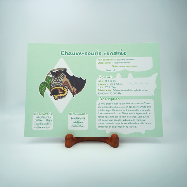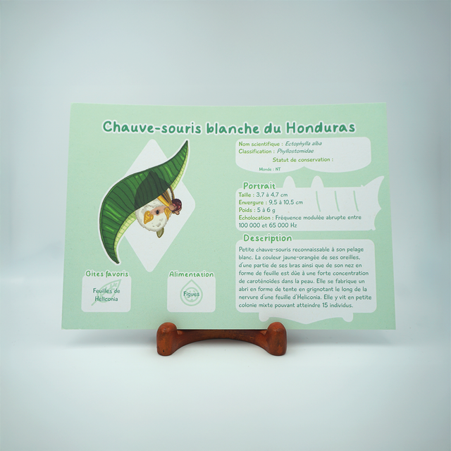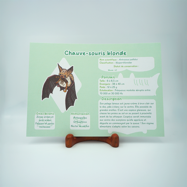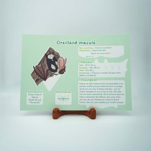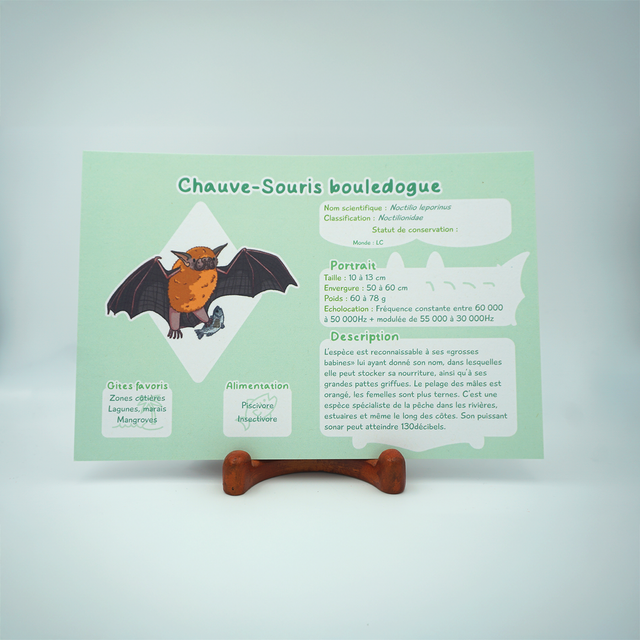 Six prints de vulgarisation autour de six espèces de chauves-souris venant d'Amérique latine et d'Amérique du nords. L'occasion d'en apprendre plus sur l'écologie de ces animaux souvent mal-aimés, ou d'avoir un joli mémo si vous êtes naturaliste !